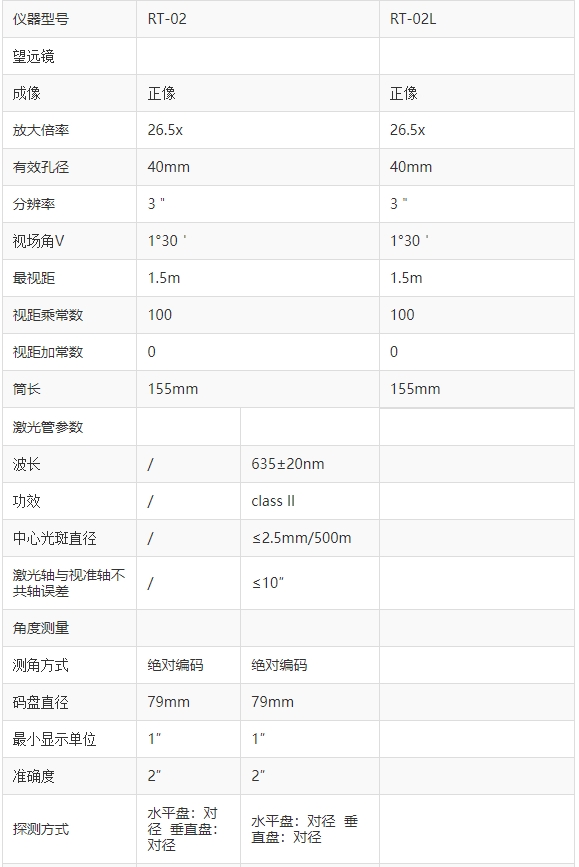 RT-02L系列電子經緯儀,采用獨立激光光路,穩定性高,按鍵簡潔,操作方便,信息符號一目了然,激光強度分強弱檔,適應各種環境。