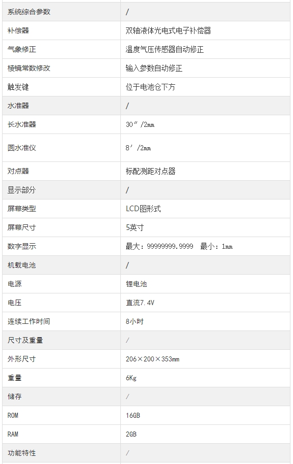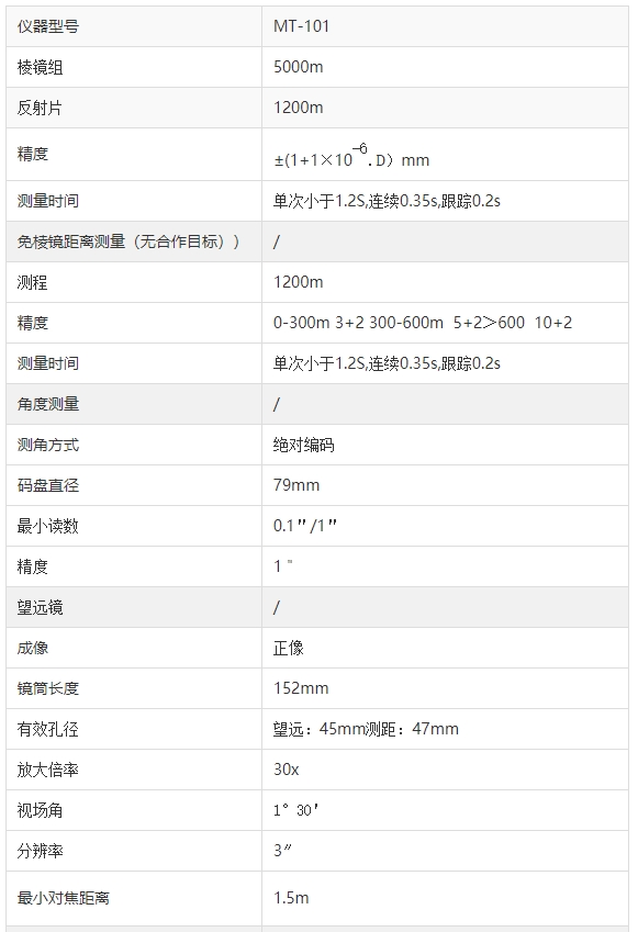 6、測距精度:有棱鏡±(1mm+1×10-6D)/有棱鏡±(2mm+2×10-6D);
